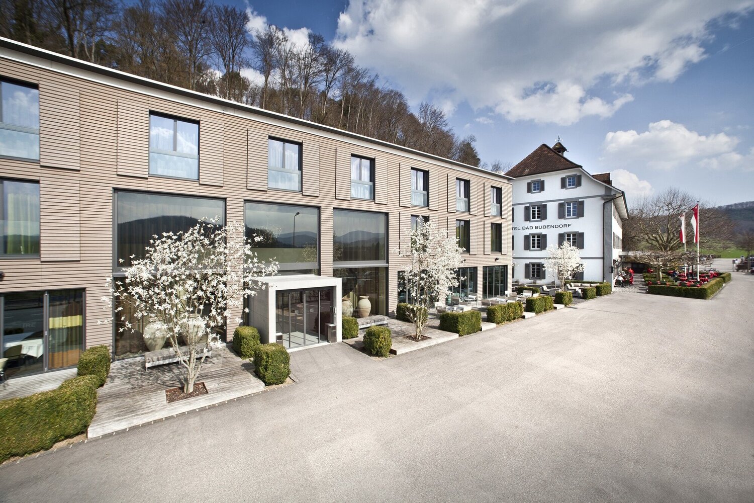 Die Gestaltung des Neubaus erfolgte in Zusammenarbeit mit der Denkmalpflege. Das Gebäude präsentiert sich eigenständig und zeitgenössisch. Reminiszenzen gibt es bei der regelmässigen Reihung der Fensteröffnungen und bei den Schiebeläden, welche die Jalousieläden des Altbaus zitieren.